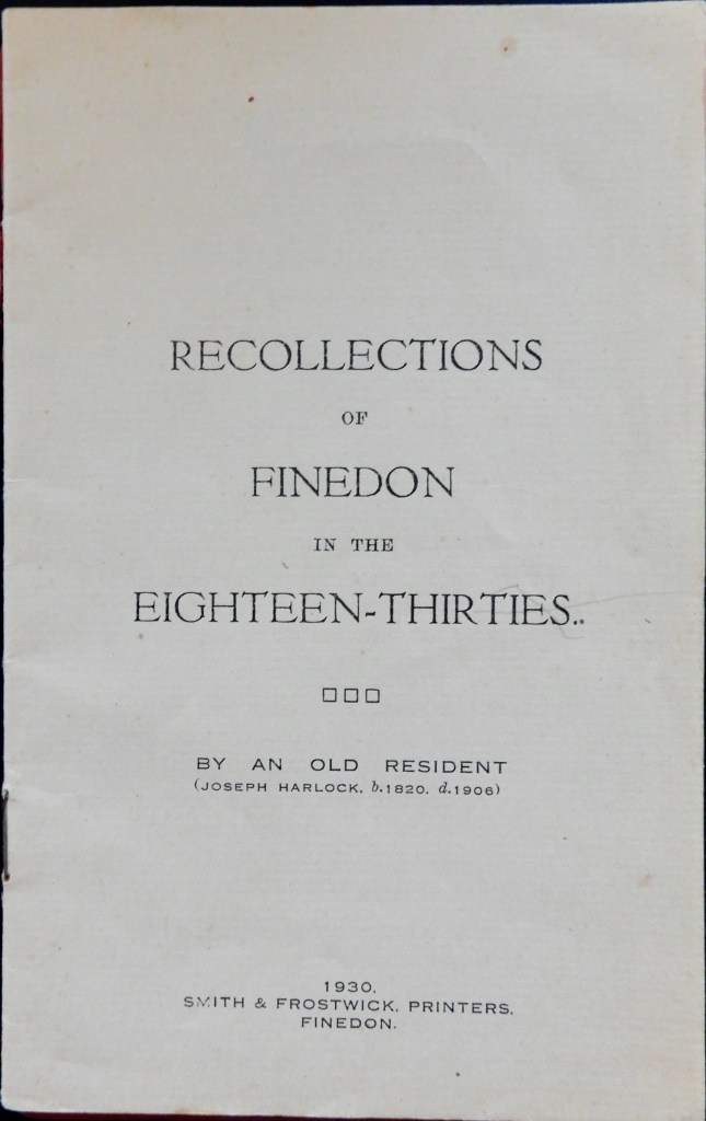 Recollections of Finedon January 17, 2024 ~ grahamrsherwood A short pamphlet written by Finedon resident Joseph Harlock who lived between 1820-1906 Share this: Click to share on X (Opens in new window) X Click to share on Facebook (Opens in new window) Facebook Like Loading... Related Published by grahamrsherwood View all posts by grahamrsherwood