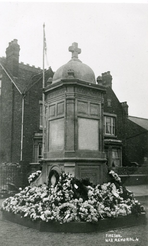 Middle L to R: 1939-45, The Cenotaph, Temporary tribute situated at bottom of Laws Lane.
